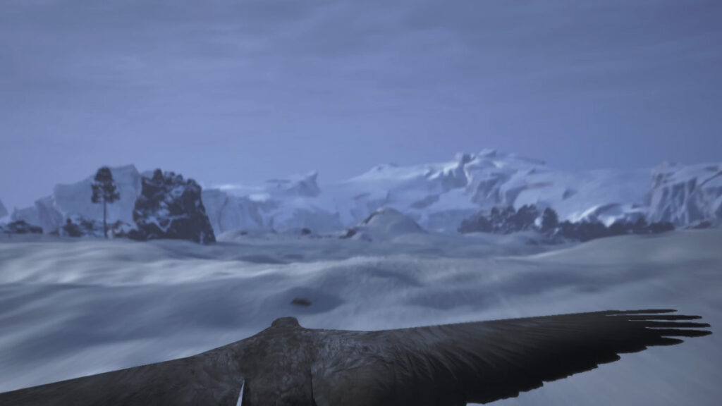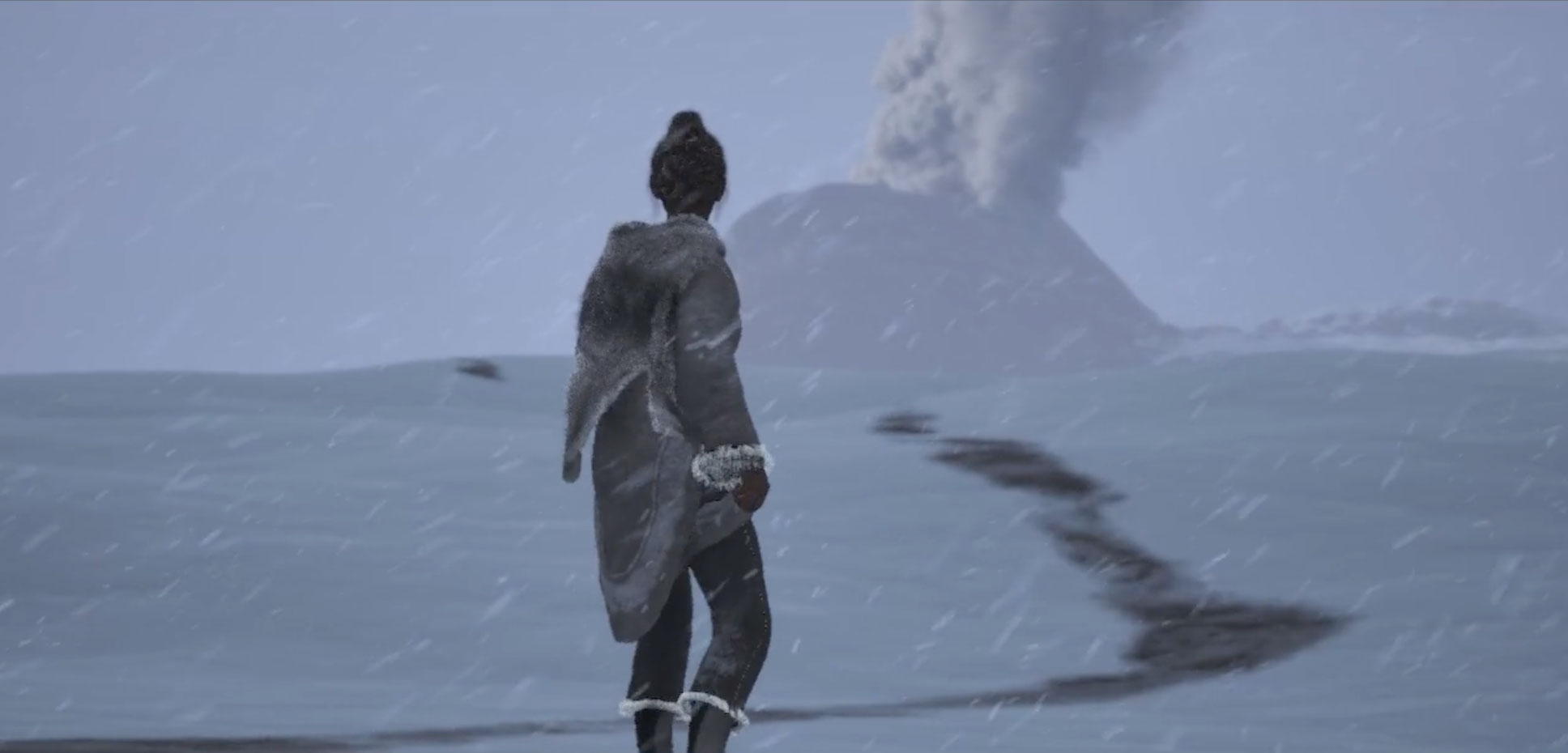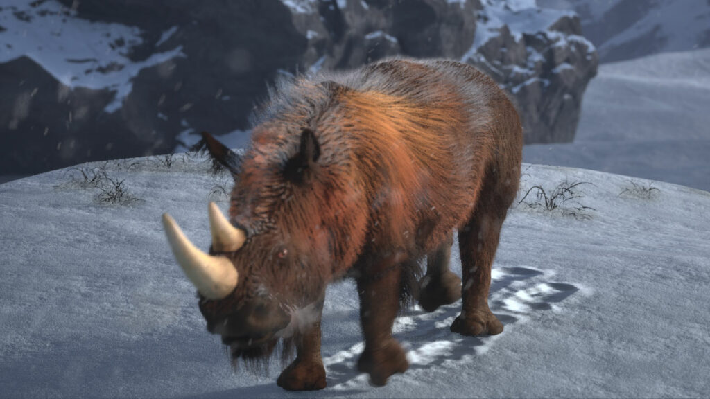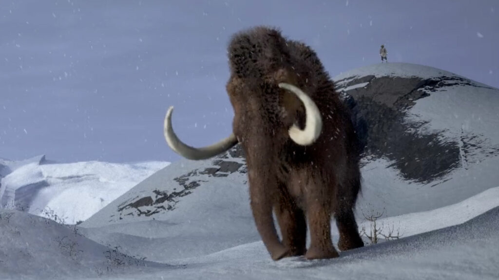 36 000 years ago, the valley is alive. Wind, snow, and tracks everywhere.